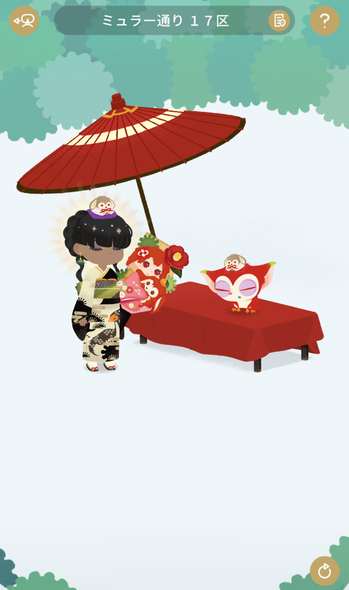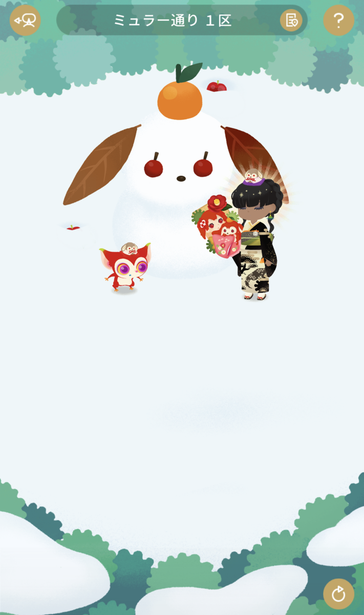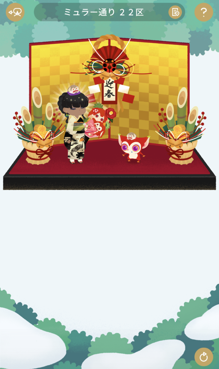 着物は去年と一緒ですが、配布されたラビネアクセとガチャで手に入れたラビネ羽子板を持って新年へのやる気は満々です。