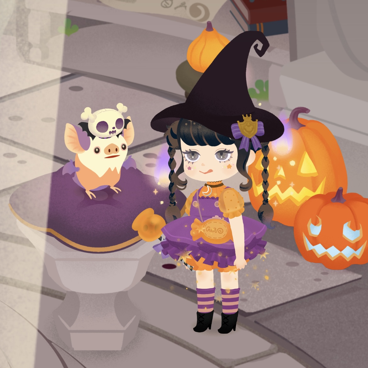 管理リヴリーのポルタくんの帽子にも蜘蛛の巣がかかりホラーな雰囲気です。