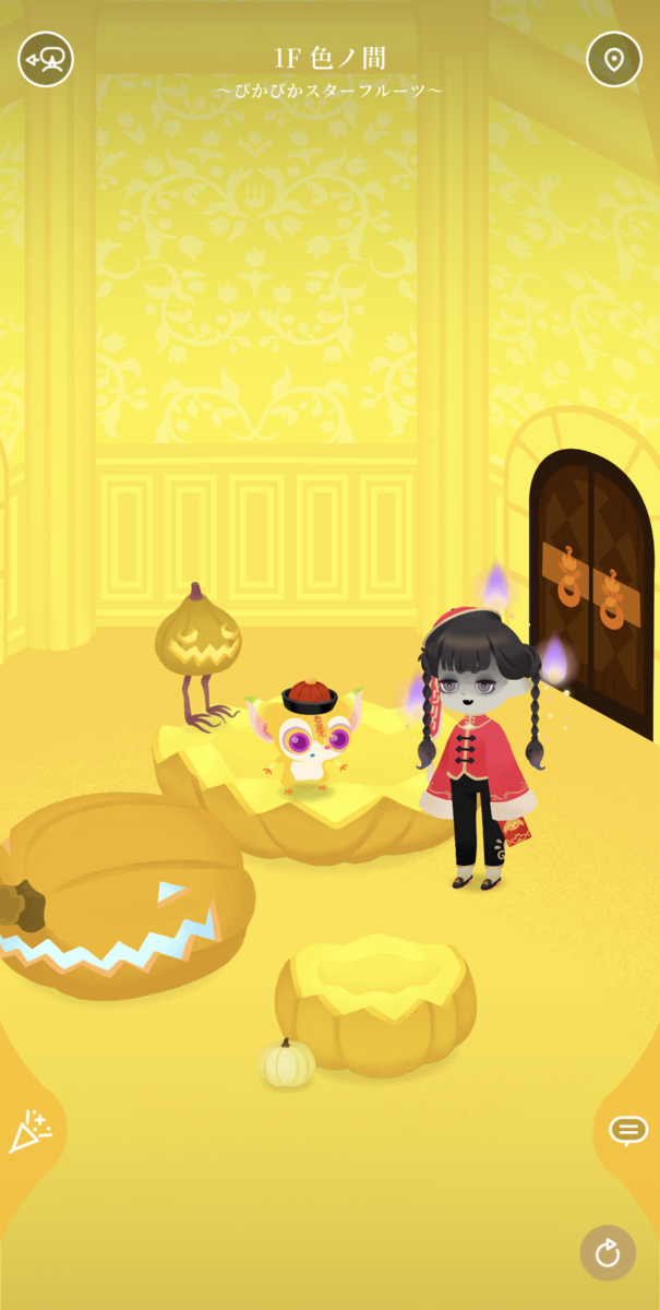 こちらのお部屋、葡萄たちの舞踏会だけはオレンジ色のカボチャでハロウィンカラーになっています。