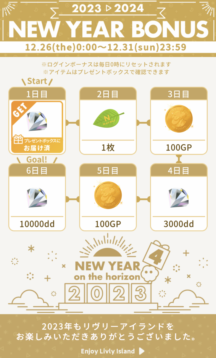 — 【公式】リヴリーアイランド (@newLivlyIsland) 2024年1月1日
