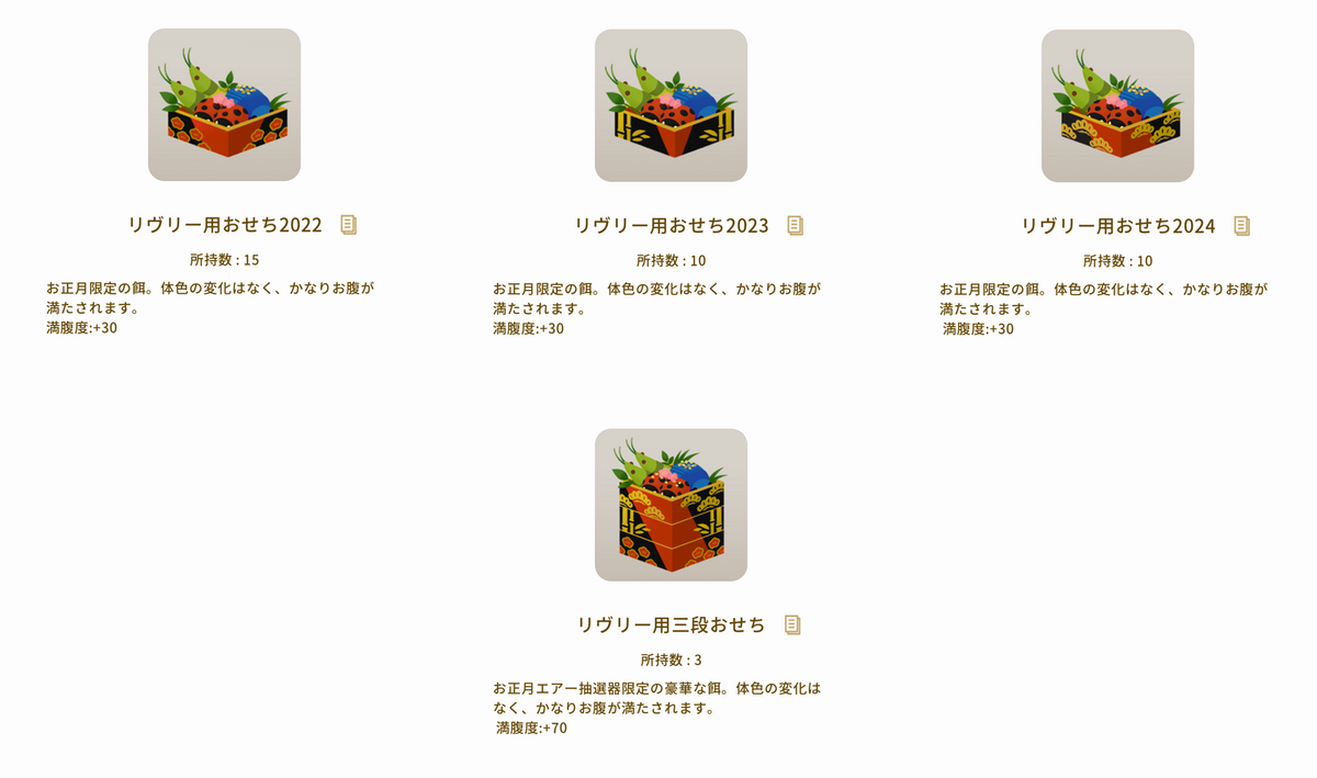 お正月エアー抽選器限定の特別餌やガチャチケットなど、さまざまな景品を用意しています🍱✨