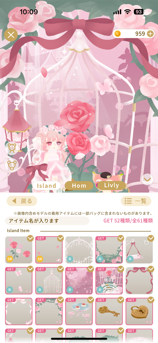 リヴクリmocoさんのアイテムに合わせて、アリス風のアイランドにしてみました。