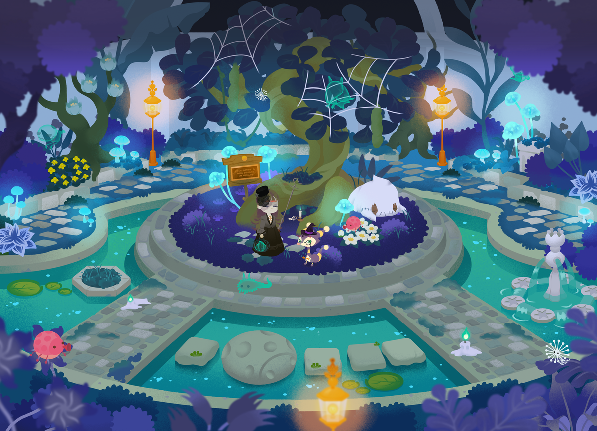 深いブルーの植物と、発光するキノコがとっても綺麗〜これは朝の写真ですが、夜になったらさらに幻想的な雰囲気になりそうです。